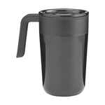 WoW! Double-walled thermos cup made from recycled stainless steel and PP. With a beautiful high-gloss finish this cup features a plastic handle and easy close push-on lid with sliding/click opening. Suitable for keeping cold or hot drinks at the correct temperature. Total recycled material: 36%. Capacity 400 ml.